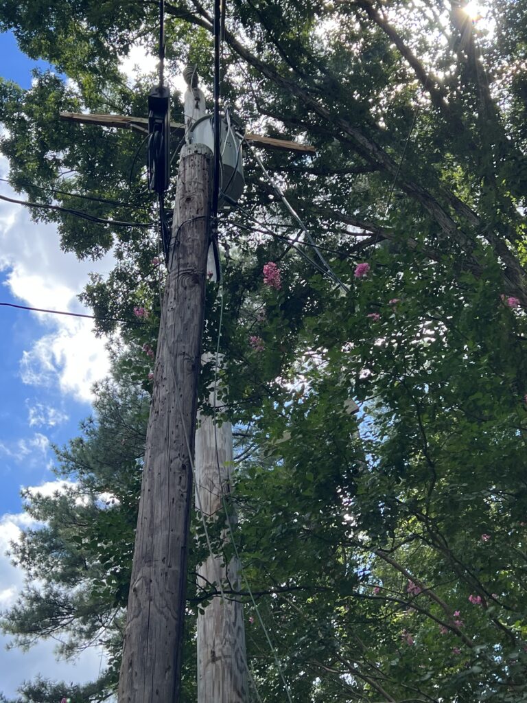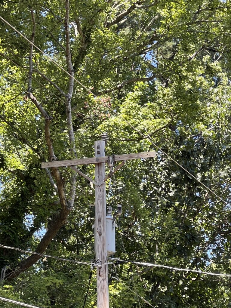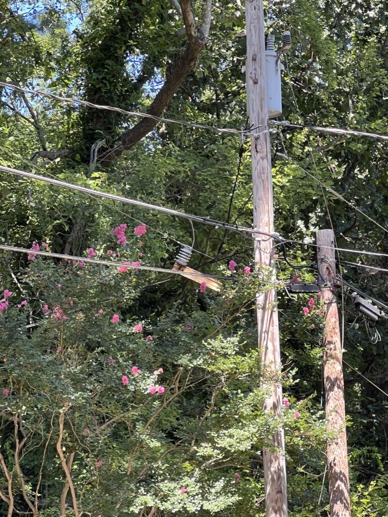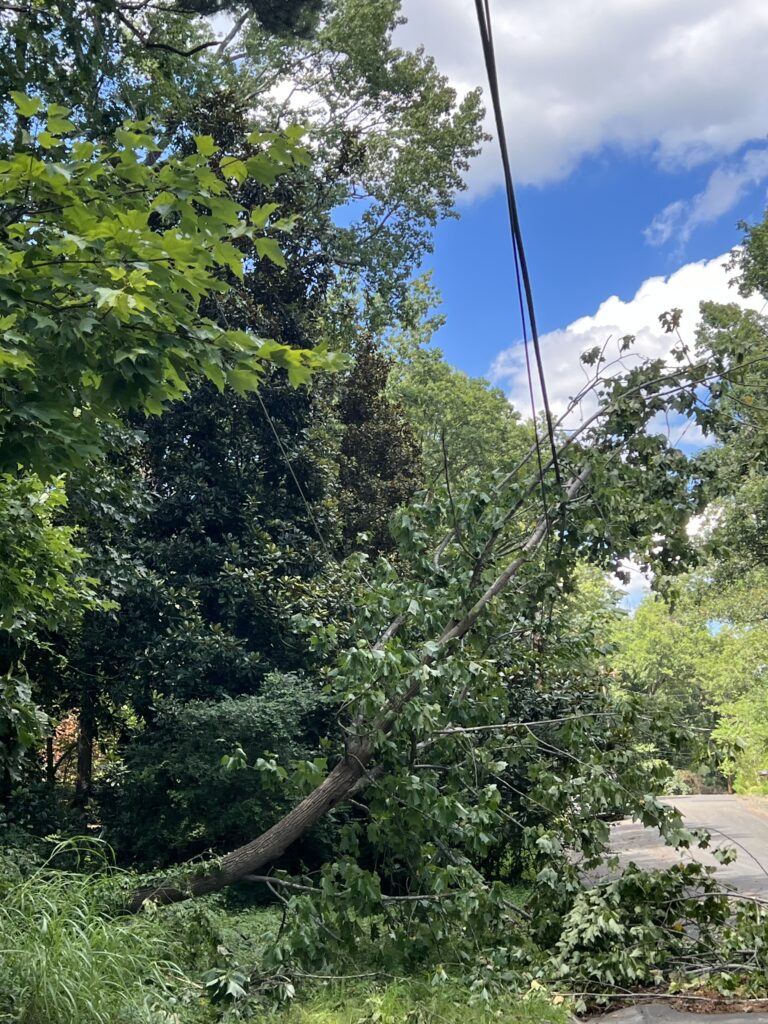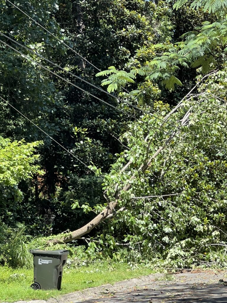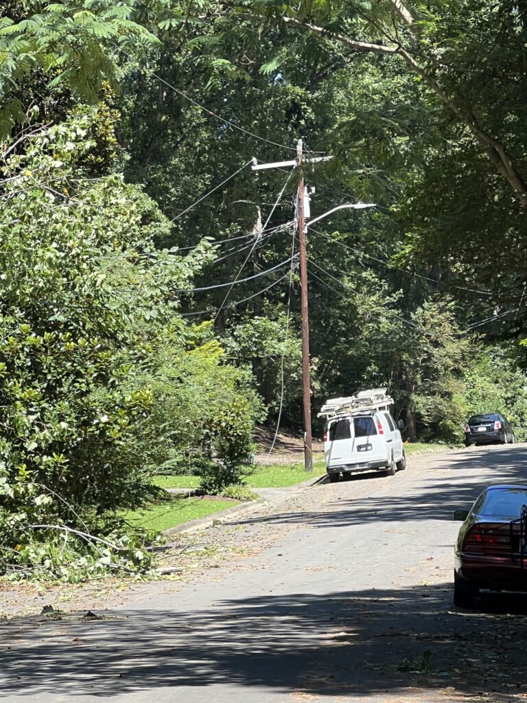 Power went out sometime between 3 and 4 PM on the 15th of August. Trees are down all over Durham along with almost all traffic signals out. To be noted the businesses across from South Square are with out power although during hurricane Fran they did still have power.